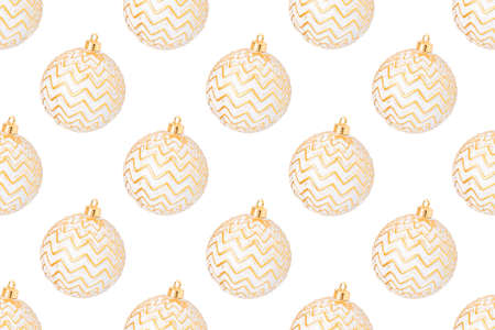 Pattern of Christmas balls isolated on white background. Flat lay, top view.