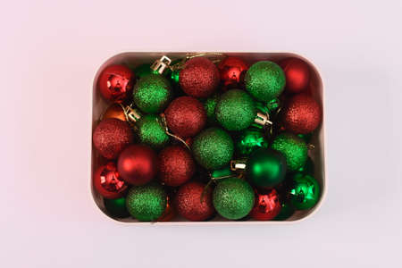 Colored Christmas Balls. Flat lay concept.