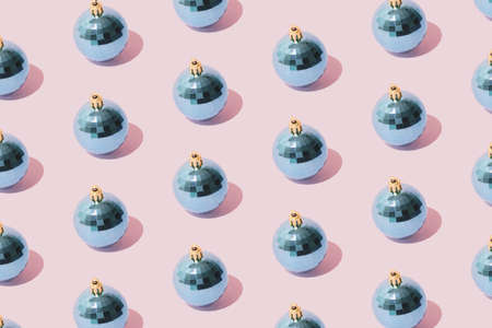 Christmas balls pattern flat lay on pastel background.