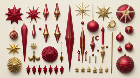 A stunning collection of elegant red and gold Christmas ornaments, perfect for festive holiday decoration. This image showcases vibrant colors and intricate designs.