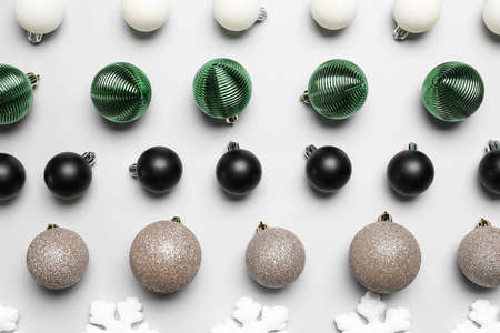 Christmas composition with colorful balls and ornaments decorations on white background