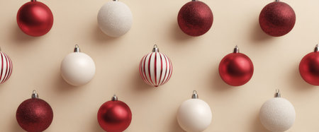 Red, white, and striped ornaments are arranged symmetrically on a light-colored wall, adding a festive touch for holiday celebrations. This vibrant decor symbolizes joy and togetherness.