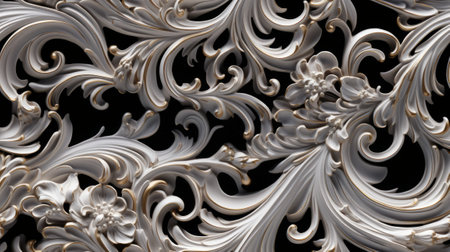 a rich golden baroque ornament delicately engraved on a pristine white background, showing the intricate details and lavish curves of the design to evoke a sense of opulence SEAMLESS PATTERN