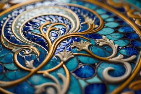 This captivating image showcases an ornate decorative design, highlighting intricate details and vibrant colors on a stunning wooden surface, perfect for artistic inspiration.
