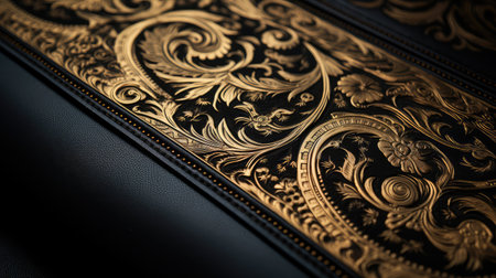 Intricate floral pattern on embossed leather surface with elegant details. That the image is generated using AI.