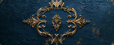 dark blue wall with intricate gold filigree, created with generative ai
