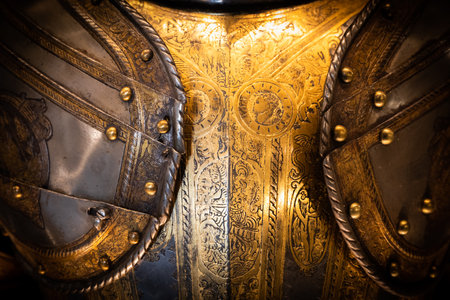 Parts of ancient knight's armor.A medieval concept.Metallic texture.