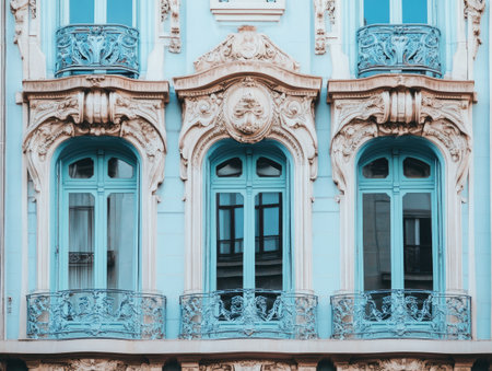 Captivating view of ornate architectural details featuring three arched windows. This image showcases the elegance and craftsmanship of historical buildings.