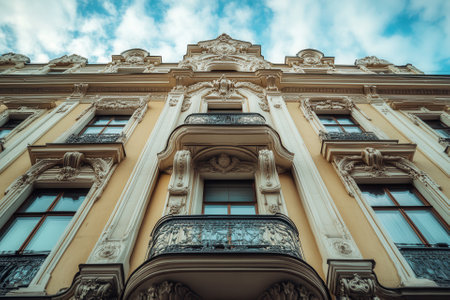 The ornate architecture of the old building exudes elegance and history generated by artificial intelligence