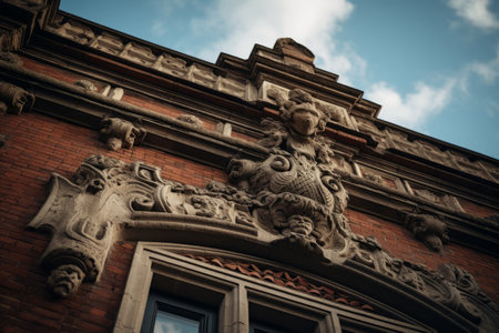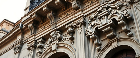 This image captures the stunning details of ornate architectural carvings on a historic facade, highlighting exceptional craftsmanship and intricate design elements.