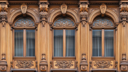 Explore the intricate details of a historic building facade featuring beautifully carved wooden elements, ornate windows, and classic design.