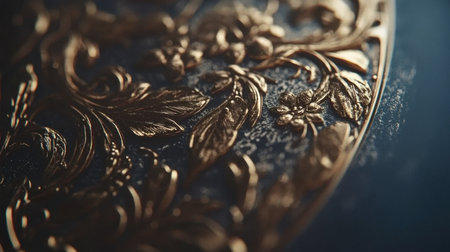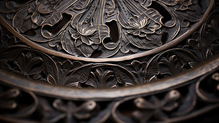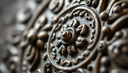 This captivating close-up showcases an intricate floral design on an antique metal surface. The elegance and detail highlight expert craftsmanship, perfect for artistic projects.