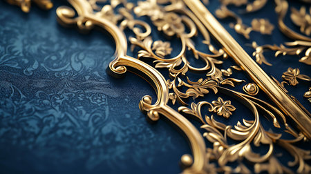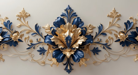 AI Generated. Opulent Gold and Dark Blue Ornate Floral Design