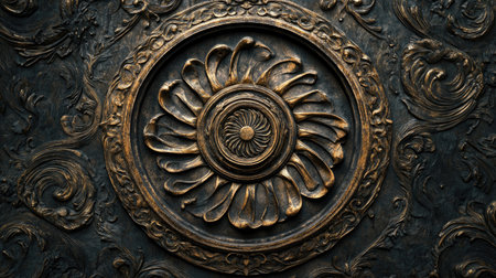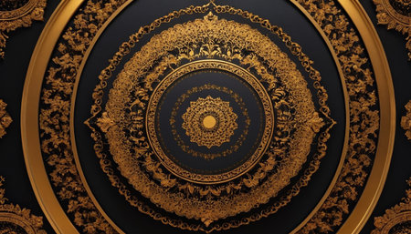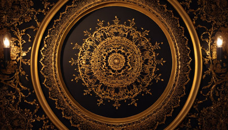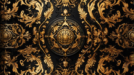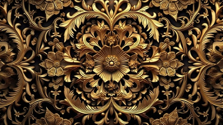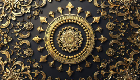 Golden floral bas-relief forming a mandala pattern on a black background, creating a luxurious and elegant design