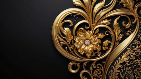 A wedding black background with golden color and luxurious ornament, creating an elegant and sophisticated ambiance perfect for a lavish celebration
