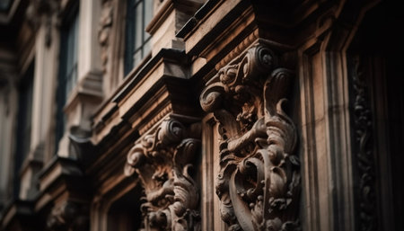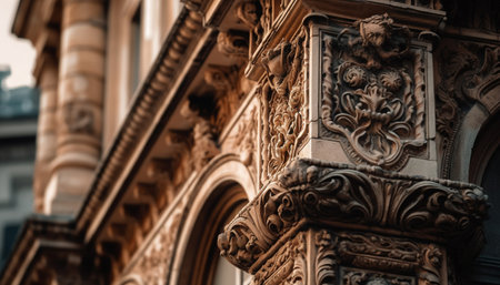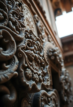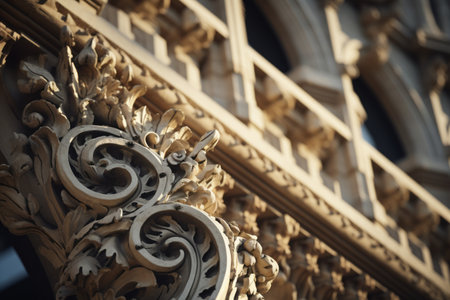 A close-up view of an ornate architectural detail showcasing intricate carvings and textures, highlighting the beauty of historical design elements.