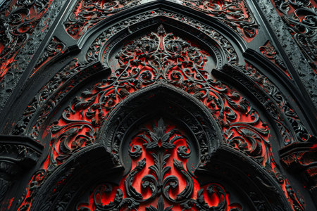 Luxurious Richly ornate black red wall. Interior fabric. Generate Ai