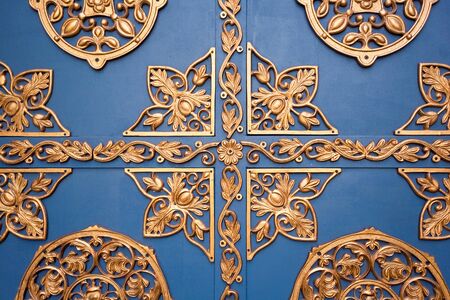 Decorative metal gate ornament. Antique iron door with classic ornaments.