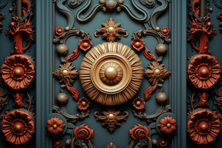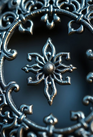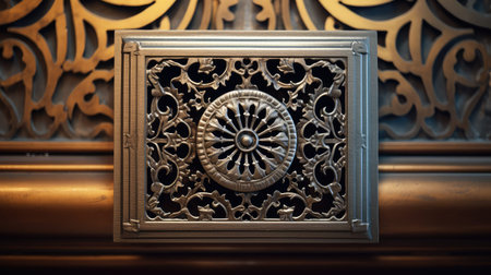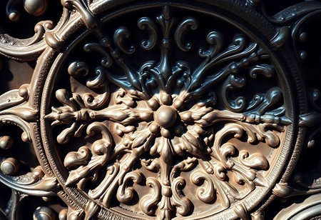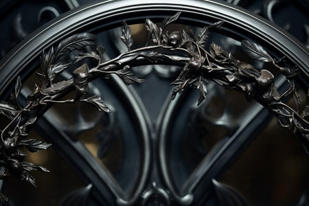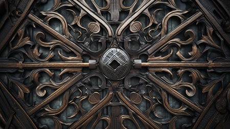 close-up of intricate metalwork detail on a gate or door, created with generative ai