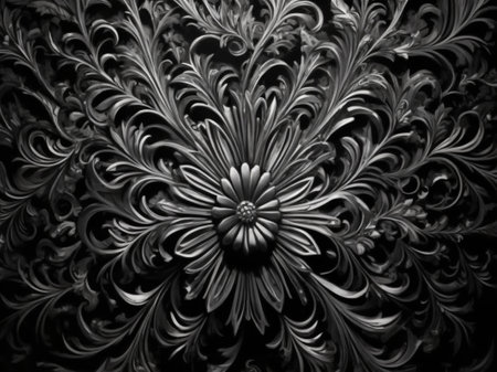 This image showcases a beautifully crafted ornamental flower design on a dark textured surface, highlighting intricate details and rich artistry.