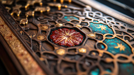 This captivating image showcases an ornate decorative design, highlighting intricate details and vibrant colors on a stunning wooden surface, perfect for artistic inspiration.