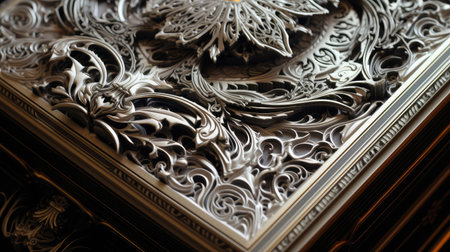 A vintage frame with ornate carvings and gold accents --ar 3:2 Job ID: 83ec1967-4839-401f-b637-8959c8736b78