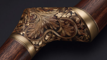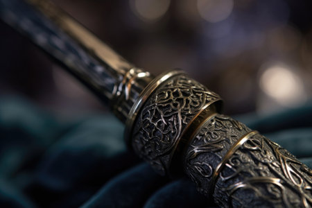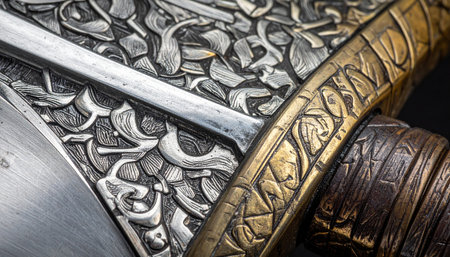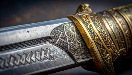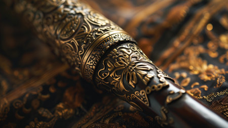 Explore the beauty of this ornate sword featuring intricate designs and a stunning dark background, highlighting craftsmanship and cultural significance.