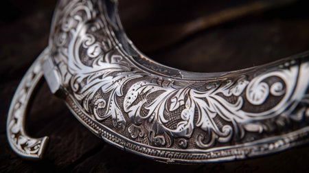 A gleaming silver horseshoe with intricate etchings representing the luck and success of a winning horse