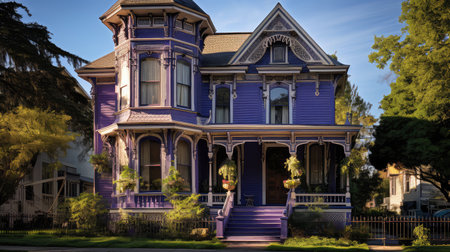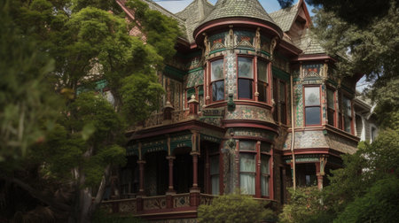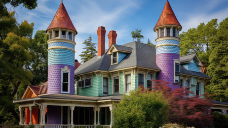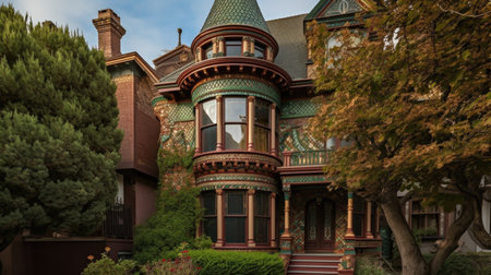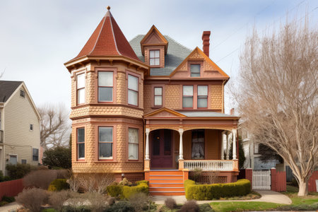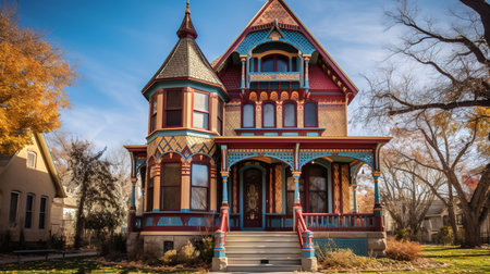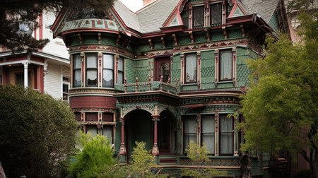 classic victorian house, with intricate exterior details and painted accents, in vibrant neighborhood, created with generative ai