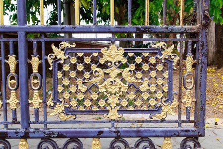 Beautiful golden Forged gates design thai temple. Thailand decor.