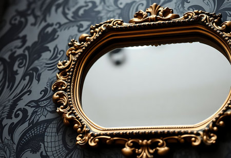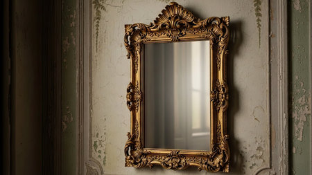 Ornate gold frame showcases elegant antique mirror with captivating reflections