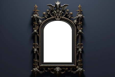 Enchanted mirror isolated on white background, ornate frame with magical reflections, ideal for fantasy concepts