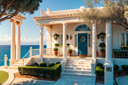classic revival-style house, with detailed columns and ornate entryway, created with generative ai