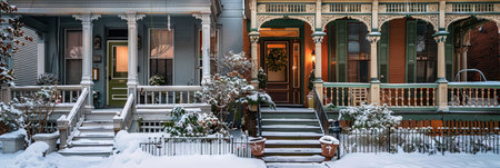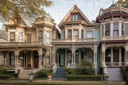 a row of grand victorian homes, with their wrap-around porches and intricate details, created with generative ai