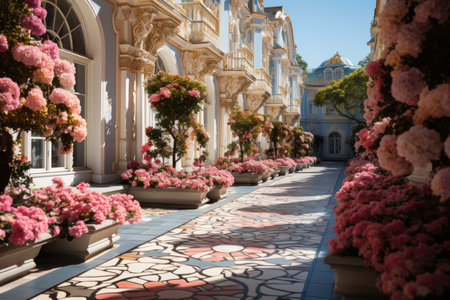 An AI generated illustration of an aged structure with intricately designed and adorned balconies featuring ornamental carving