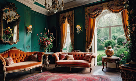 Discover a breathtaking vintage parlor filled with elegant furniture, ornate decor, and soft colors that create a cozy and sophisticated atmosphere.