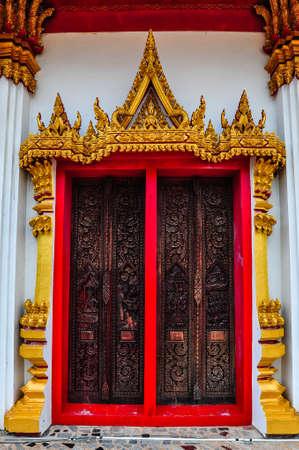 wooden door in thai temple