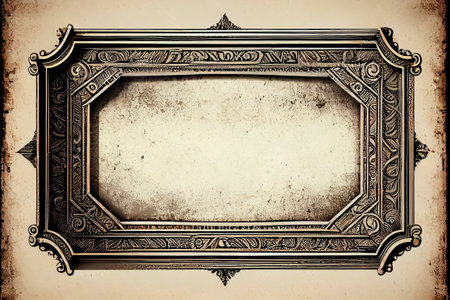 Crafted vintage scroll design, floral borders. Background showcases textured, aged paper appearance lending classic timeless feel. Invitation, announcement or decorative stationery. AI Rococo baroque
