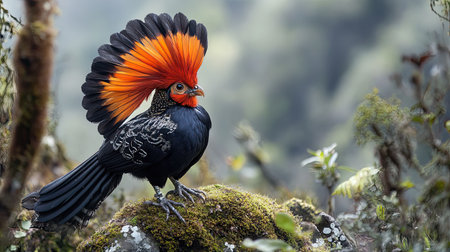 close-up of exotic bird with its feathers in full display, surrounded by lush greenery, created with generative ai