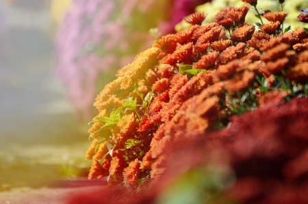 Red chrysanthemum. Beautiful autumn flower in a garden decor. Floral background for your design.