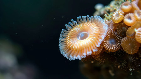 Wonderful aquatic life in ocean seabed. anemones. Coral reef design. Generative AI. Illustration for banner, poster, cover, brochure or presentation.