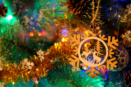 Christmas decoration on the Christmas tree. Selective focus. Holiday.