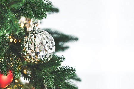 Christmas tree decoration on blurred bokeh background. Merry Christmas and Happy New Year!