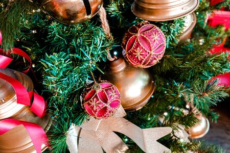 Christmas tree with Christmas decorations is indoor shooting close-up