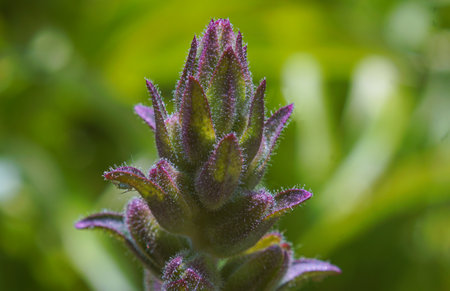 Flower of Coleus canina Scaredy Cat close up on blurred green background