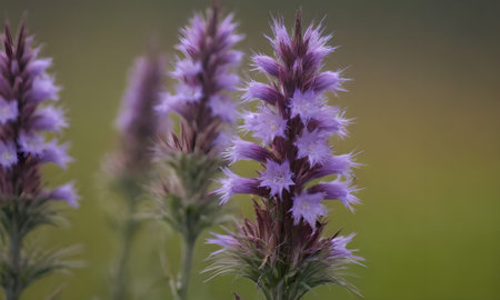 Macro of the yellow tips of some purple spike plants in the wild