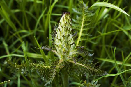 Broomrape, branched broomrape flower in the meadow in springtime .Orobanche species