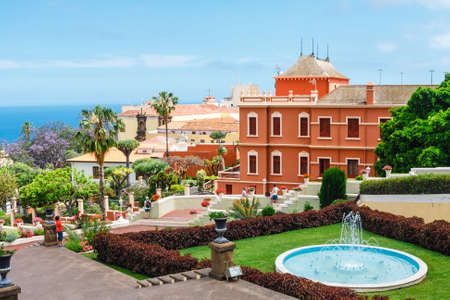 La Orotava, Tenerine, Spain, June 11, 2015: Unknown tourists visit the tropical botanical gardens in La Orotava town, Tenerife, Canary Islands