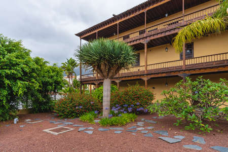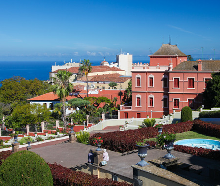 Liceo de Taoro viewed from Victoria garden at la Orotava town at Tenerife, Canary Islands, Spain.