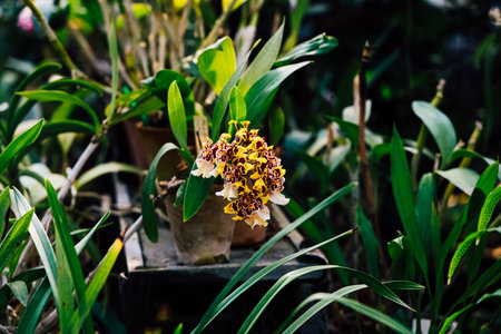 Yellow orchids flower in the garden. Show the natural elements of the orchid garden. plants with macro image and selective soft focus for background.